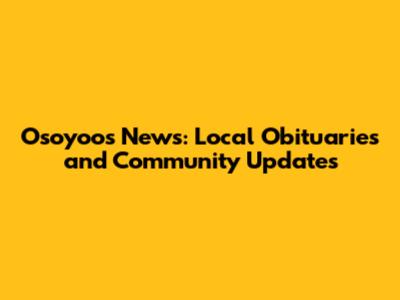 Osoyoos News: Local Obituaries And Community Updates
