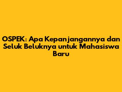 Ospek adalah singkatan dari Orientasi Studi dan Pengenalan Kampus, yang merupakan kegiatan penting bagi mahasiswa baru untuk beradaptasi dengan lingkungan perguruan tinggi. Tujuannya adalah untuk memperkenalkan sistem pendidikan, lingkungan kampus, serta membentuk karakter mahasiswa yang berintegritas dan mampu beradaptasi. Persiapan yang matang, sikap yang positif, dan partisipasi aktif akan membantu kalian menjalani ospek dengan sukses dan mendapatkan manfaatnya secara maksimal. Manfaatkan ospek sebagai langkah awal menuju kesuksesan di perguruan tinggi dan raihlah masa depan yang gemilang!