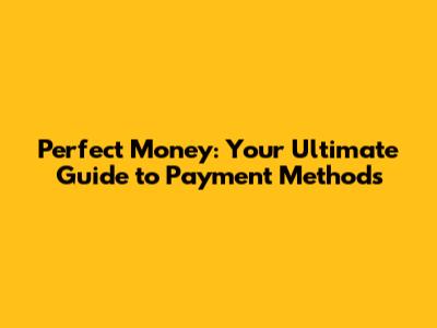 Perfect Money: Your Ultimate Guide To Payment Methods