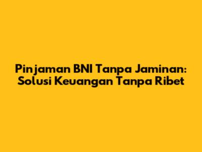 Pinjaman uang di BNI tanpa jaminan adalah topik yang banyak dicari, dan wajar saja! Siapa sih yang nggak pengen dapat suntikan dana cepat tanpa harus pusing mikirin aset yang mau dijaminkan? Nah, artikel ini bakal ngebahas tuntas tentang pinjaman tanpa agunan dari BNI, mulai dari jenis-jenisnya, syarat pengajuan, hingga tips jitu biar pengajuan kalian disetujui. Jadi, buat kalian yang lagi butuh dana segar, simak terus ya!