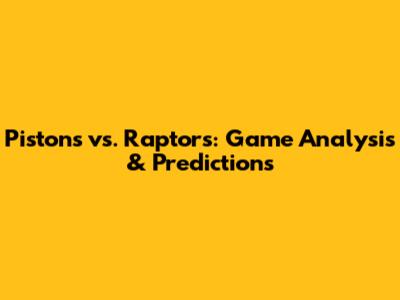 Pistons Vs. Raptors: Game Analysis & Predictions