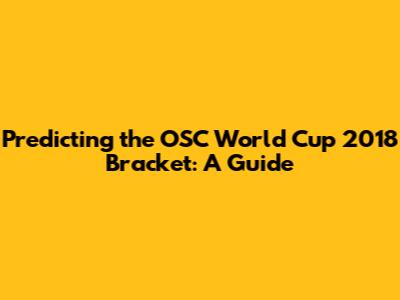 Hey guys! Ready to dive into the exciting world of the OSC World Cup 2018? If you're anything like me, you're probably buzzing with anticipation, eager to see which teams will clash, who will emerge victorious, and, of course, how your bracket predictions will fare! This guide is designed to help you navigate the thrilling process of predicting the OSC World Cup 2018 bracket. We'll explore the key factors that influence match outcomes, offer valuable tips for making informed predictions, and provide resources to enhance your experience. So, buckle up, grab your virtual pen and paper (or your favorite bracket app), and let's get started!