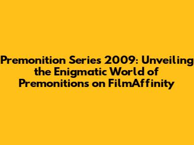 Hey film buffs! Ever stumbled upon a movie that just… sticks with you? One that leaves you pondering its mysteries long after the credits roll? Well, Premonition (Serie 2009) is one of those flicks. Let's dive deep into this intriguing film and explore why it's a must-watch, especially considering its presence and reviews on FilmAffinity. This article is your guide to understanding the plot, characters, and overall impact of this gripping series. We're going to break down everything from the eerie atmosphere to the stellar performances, all while discussing what makes it stand out from the crowd. So, grab your popcorn, settle in, and get ready for a cinematic journey that will leave you questioning what's real and what's not!