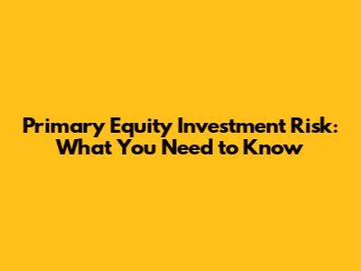 Primary Equity Investment Risk: What You Need To Know
