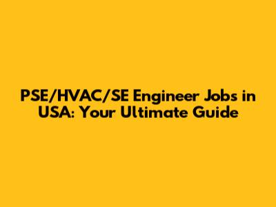 PSE/HVAC/SE Engineer Jobs In USA: Your Ultimate Guide