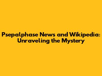 Psepalphase News And Wikipedia: What You Need To Know