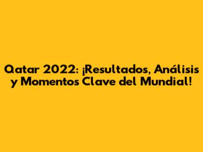 Qatar 2022: ¡Resultados, Análisis Y Momentos Clave Del Mundial!