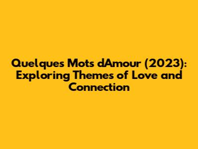 Quelques Mots D'Amour: A Deep Dive Into The 2023 Film