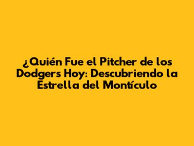 ¿Cómo Saber Quién Fue el Pitcher de los Dodgers Hoy?