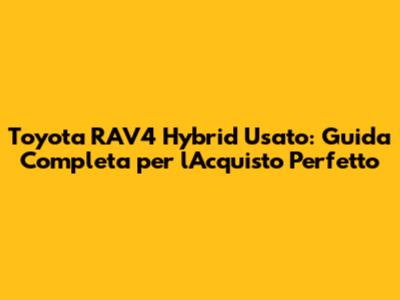 Ciao a tutti, appassionati di auto! Siete qui perché state valutando l'acquisto di una Toyota RAV4 Hybrid usata? Ottima scelta! La RAV4 Hybrid è un SUV fantastico, rinomata per l'affidabilità , l'efficienza e le prestazioni brillanti. Ma come orientarsi nel mercato dell'usato per trovare l'offerta migliore? In questo articolo, vi guideremo passo dopo passo, svelandovi tutti i segreti per acquistare una Toyota RAV4 Hybrid usata al giusto prezzo, con consigli utili, valutazioni e suggerimenti per non sbagliare. Pronti a partire? Immergiamoci nel mondo della RAV4 Hybrid usata!