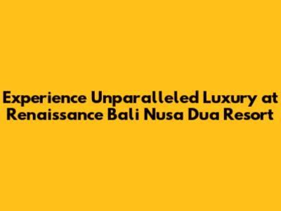 Experience Unparalleled Luxury at Renaissance Bali Nusa Dua Resort