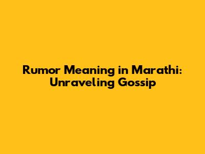 Rumor Meaning In Marathi: Unraveling Gossip