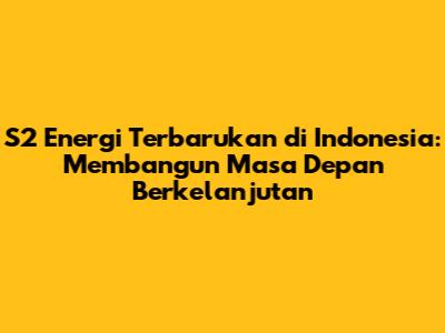 S2 Energi Terbarukan Di Indonesia: Peluang Dan Tantangan