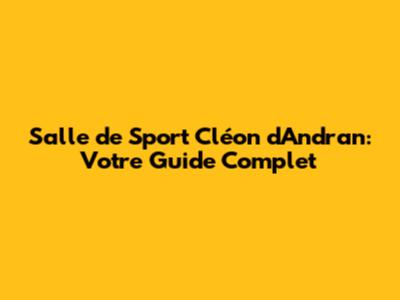Salle De Sport Cléon D'Andran: Votre Guide Complet
