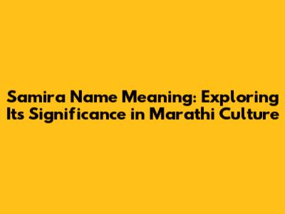 Samira Name Meaning: Exploring Its Significance In Marathi Culture