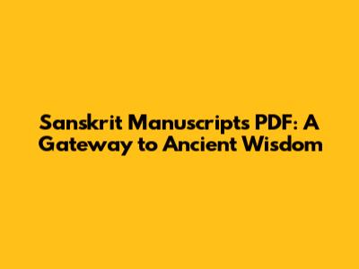 Sanskrit Manuscripts PDF: A Gateway To Ancient Wisdom