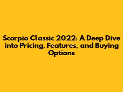 Hey everyone! If you're here, you're probably as intrigued by the Scorpio Classic 2022 model as I am. This article is your comprehensive guide to everything you need to know about this rugged SUV, from its price tag and features to the best way to get your hands on one. We're going to break down the Scorpio Classic 2022's price, explore its key features, and even give you some insider tips on making a smart purchase. So, buckle up, and let's dive in!