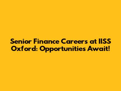 Senior Finance Careers At IISS Oxford: Opportunities Await!