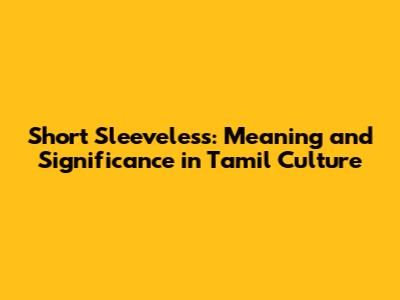 Short Sleeveless: Meaning And Significance In Tamil Culture