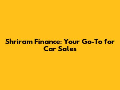 Shriram Finance: Your Go-To For Car Sales