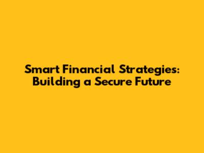 Smart Financial Strategies For A Secure Future