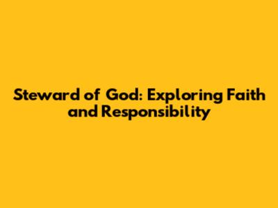 Steward Of God: Exploring Faith And Responsibility