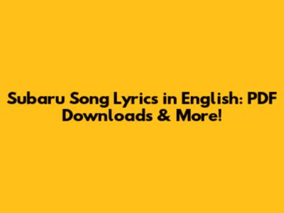 Subaru Song Lyrics In English: PDF Downloads & More!