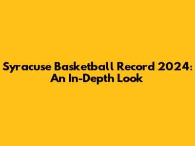 Syracuse Basketball Record 2024: An In-Depth Look