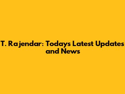 T. Rajendar: Today's Latest Updates And News