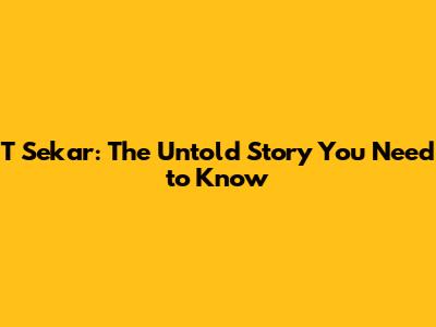 T Sekar: The Untold Story You Need To Know