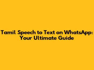 Tamil Speech To Text On WhatsApp: Your Ultimate Guide