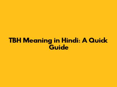 TBH Meaning In Hindi: A Quick Guide