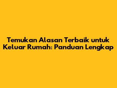 Temukan Alasan Terbaik Untuk Keluar Rumah: Panduan Lengkap
