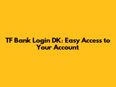 TF Bank Login DK: Easy Access To Your Account