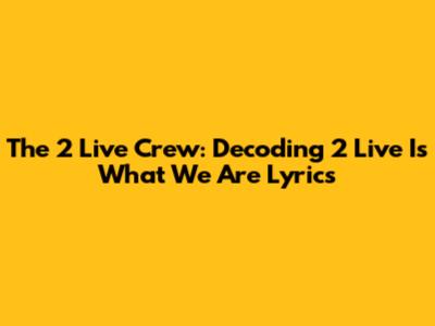 The 2 Live Crew: Decoding '2 Live Is What We Are' Lyrics