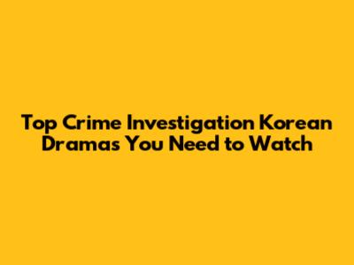 Must-Watch Crime Investigation K-Dramas
