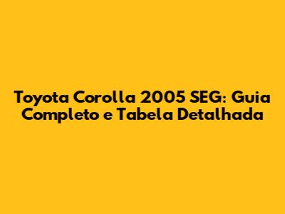 Toyota Corolla 2005 SEG: Guia Completo E Tabela Detalhada