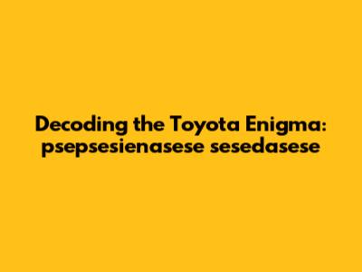 Now, let's get a little creative and explore some hypothetical meanings. Suppose "psepsesienasese sesedasese toyota" represents a specific problem someone is facing with their car. We can begin by focusing on common issues in Toyotas. Toyotas are known for their reliability, but, like all vehicles, they can experience problems. Let's explore some possible problems and how this unique phrase might relate to them.