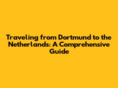 Traveling From Dortmund To The Netherlands: A Comprehensive Guide