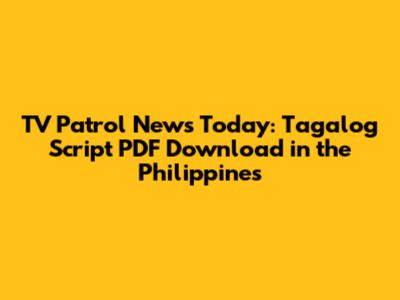 TV Patrol News Today: Tagalog Script PDF Download In The Philippines