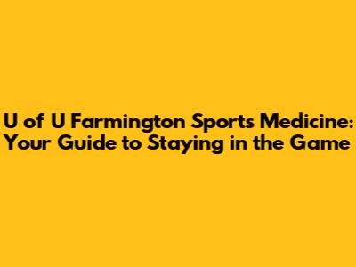 U Of U Farmington Sports Medicine: Your Guide