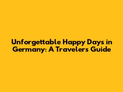 Unforgettable Happy Days In Germany: A Traveler's Guide
