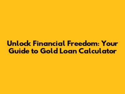 Unlock Financial Freedom: Your Guide To Gold Loan Calculator
