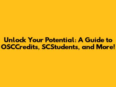 Unlock Your Potential: A Guide To OSCCredits, SCStudents, And More!