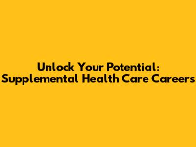 Unlock Your Potential: Supplemental Health Care Careers
