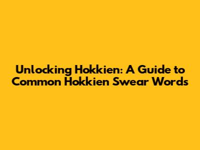 Unlocking Hokkien: A Guide To Common Hokkien Swear Words