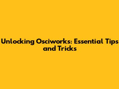 Unlocking Osciworks: Essential Tips And Tricks