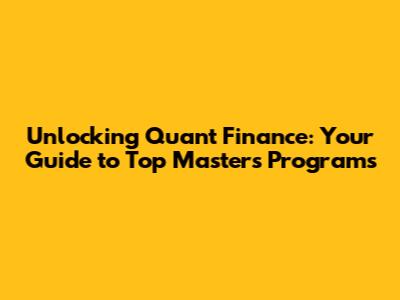Unlocking Quant Finance: Your Guide To Top Masters Programs
