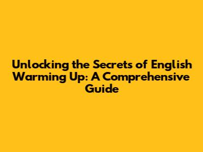 Unlocking The Secrets Of English Warming Up: A Comprehensive Guide