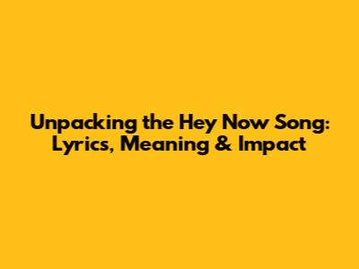 Unpacking The 'Hey Now' Song: Lyrics, Meaning & Impact